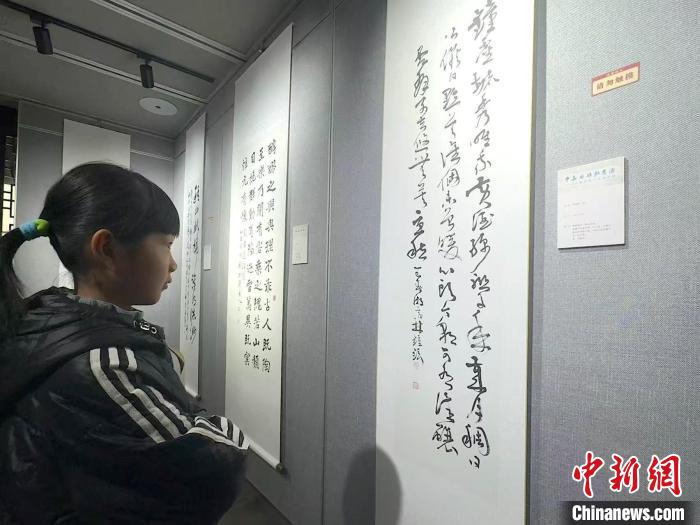 3月30日,一名女孩欣賞韓國書法家的書法作品。項(xiàng)菁 攝