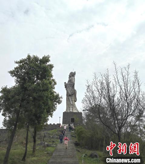 沿著山路盤旋而上,李白當(dāng)年于白兆山所寫(xiě)下的詩(shī)句,恰如眼前看到的風(fēng)景。遠(yuǎn)遠(yuǎn)地,一座高大的雕像映入眼簾。為紀(jì)念李白,白兆山上修建了一座花崗巖李白石像:只見(jiàn)他左手緊握劍柄,目視遠(yuǎn)方,似有“我本楚狂人,鳳歌笑孔丘”之豪氣。