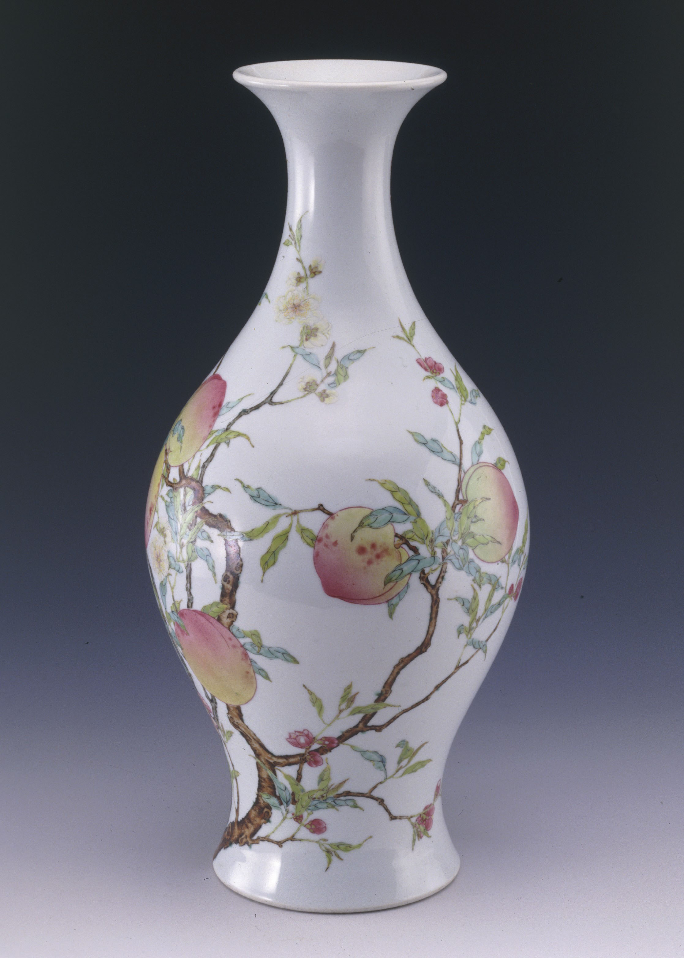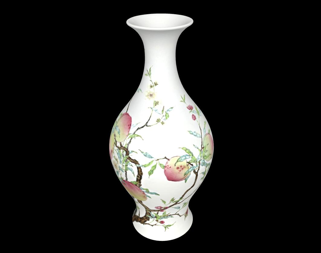清雍正粉彩蝠桃紋橄欖瓶。圖源上海博物館官網(wǎng) 據(jù)奧格登回憶,在那個年代,美國家庭流行將花瓶底部鉆孔改裝成燈座。雖然蝠桃瓶底部“慶幸”未被鉆孔,但也曾一度淪為燈座,放置在客廳的茶幾之上。為增強其穩(wěn)定性,瓶內(nèi)還加入了奧格登家后花園伴著狗糞的沙泥,長達(dá)40年。