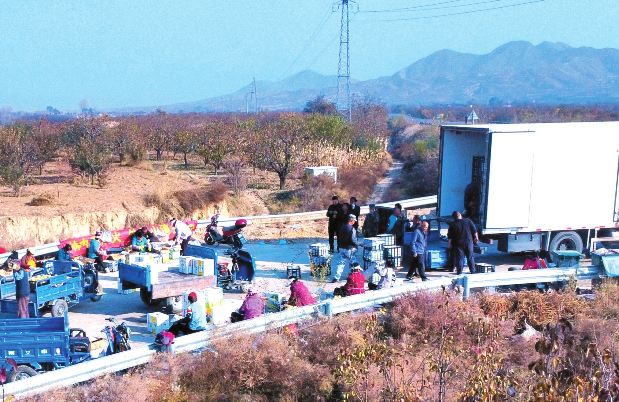 11月13日,原平市同川鎮(zhèn)上莊村果農(nóng)正將優(yōu)質(zhì)酥梨裝車發(fā)往河北等地。近年來,該市走品牌農(nóng)業(yè)和綠色種植路子,以農(nóng)業(yè)高質(zhì)量發(fā)展帶動(dòng)農(nóng)民增收。(褚震攝