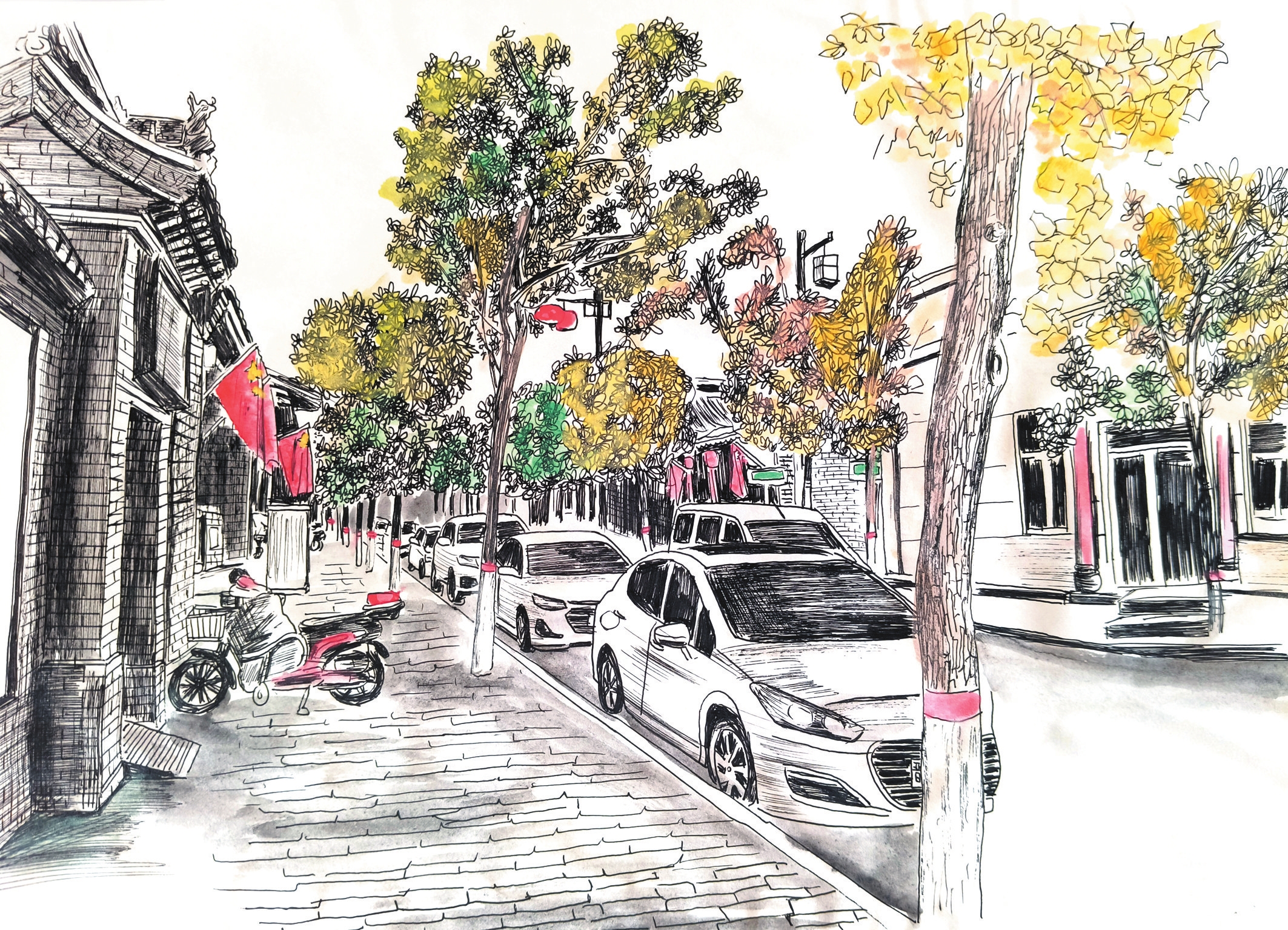 作為一種獨特的藝術(shù)形式,鋼筆畫以其細膩的線條、嚴謹?shù)臉?gòu)圖,通過控制握筆的速度和力度,畫出不同粗細的線條,從而表現(xiàn)物象。岢嵐縣美術(shù)教育工作者侯龍飛近年來通過鋼筆畫記錄生活、表達情感,他的系列鋼筆畫《忻州古城》《岢嵐街景》等作品描繪城市變遷與時代風(fēng)貌走紅網(wǎng)絡(luò)。