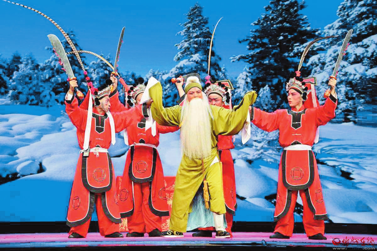 1943年,大眾劇社遷往康家灘,從工衛(wèi)旅劇社調(diào)來王洽勛等二人,負(fù)責(zé)教唱晉劇,排練了《撿柴》《蘆花》《回荊州》等傳統(tǒng)劇目。同年,晉綏二中師生共同組建了一個(gè)業(yè)余劇團(tuán),演出的節(jié)目反映了根據(jù)地人民革命斗爭(zhēng)的現(xiàn)實(shí)生活,教育意義非常深刻。如現(xiàn)代歌劇《十二把鐮刀》,話劇《棋局未定》《把眼光放遠(yuǎn)點(diǎn)》,北路梆子《十二金牌》等?!妒鹋啤肥歉毙iL(zhǎng)武進(jìn)卿編寫的劇本,由校長(zhǎng)范若愚飾演岳飛。