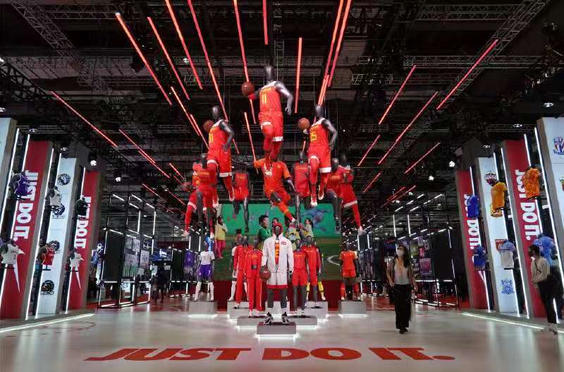 這是11月7日在進博會消費品展區(qū)拍攝的耐克展臺。新華社記者 李任滋 攝