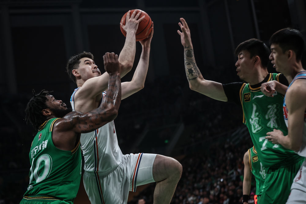 遼疆大戰(zhàn)跌宕起伏,比賽懸念留到最后一刻。盡管核心球員趙睿、李炎哲缺陣,加上齊麟腳腕受傷無法出戰(zhàn),新疆隊輪轉(zhuǎn)陣容略顯單薄,但仍給遼寧隊造成不小麻煩。遼寧隊趙繼偉和弗格先后串聯(lián)球隊,里突外投撕開對手防線,迫使新疆隊超過5分鐘沒有運動戰(zhàn)得分,以30:19結(jié)束首節(jié)。次節(jié),新疆隊充分利用籃板球優(yōu)勢,一度將分差追至2分,但球隊半場仍以49:55落后于遼寧隊。
