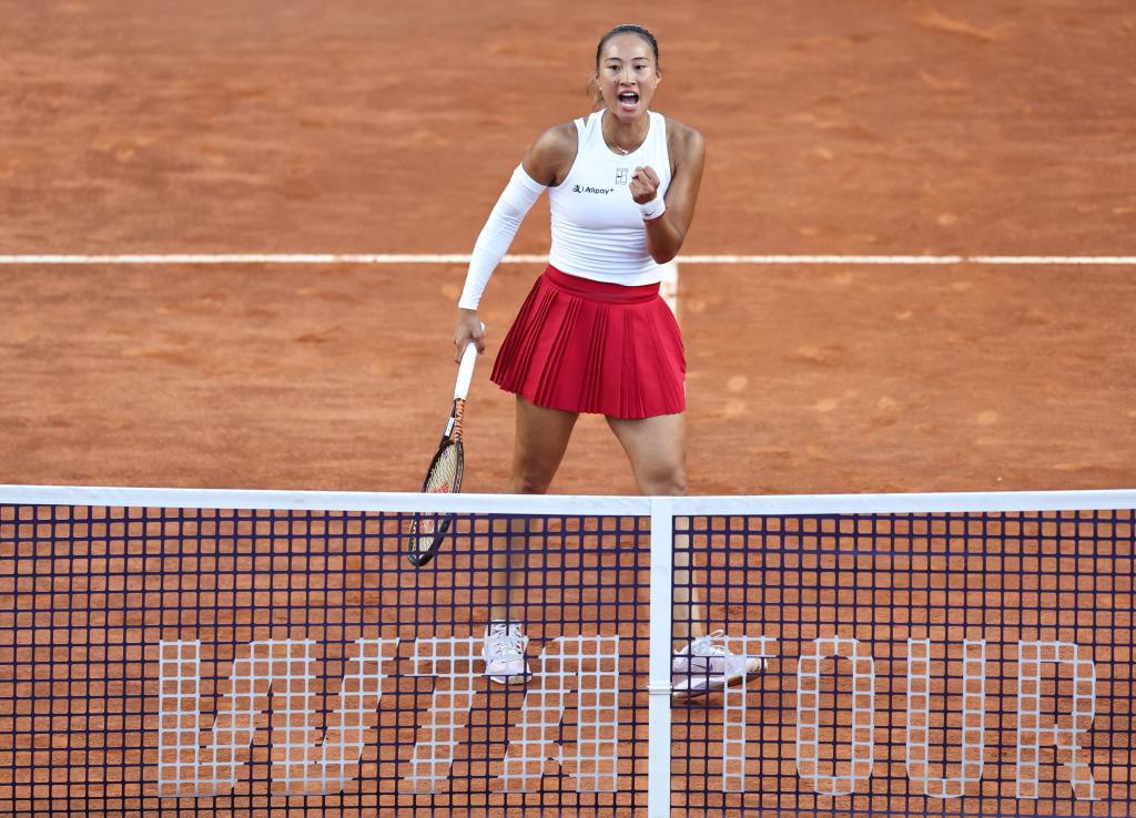 本場(chǎng)比賽,鄭欽文多次通過(guò)放小球得分?!拔铱吹綄?duì)手一直往后退,所以我希望打亂一下她的節(jié)奏。我也看到對(duì)手的腳步不是很快,我覺(jué)得在紅土場(chǎng)上,放小球是一個(gè)比較有力的武器。”
