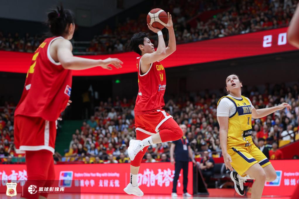 中國(guó)女籃隊(duì)員楊舒予在比賽中投籃