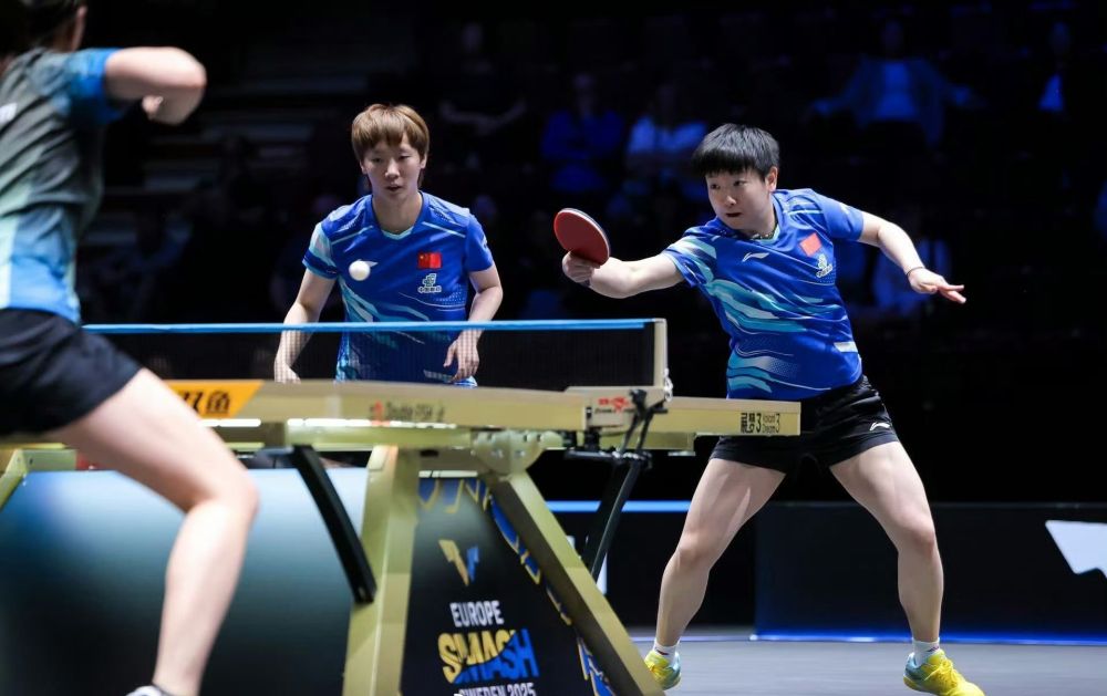 雙打賽場(chǎng)亦捷報(bào)頻傳。女雙16強(qiáng)比賽中,孫穎莎和王曼昱聯(lián)手,以3:0擊敗由中國(guó)香港隊(duì)選手吳詠琳和德國(guó)隊(duì)選手單曉娜組成的跨協(xié)會(huì)組合,輕松晉級(jí)8強(qiáng)。