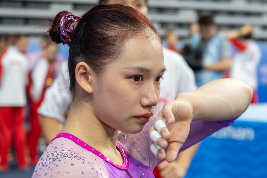 最終的比賽成績公布后,廣東隊的姑娘們難掩失望,當(dāng)場哭了出來。廣東隊教練馬青元表示:“這個結(jié)果確實很遺憾,但姑娘們都是好樣的,她們拼出了自己的實力,我相信未來的她們會在體操賽場上獲得更好的成績?!?/p>