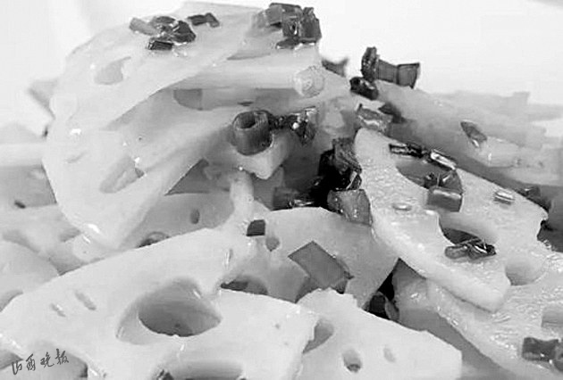 民俗流傳中,人們借助于蓮藕的特征和諧音賦予了它更多的吉祥內(nèi)容。古太原地區(qū)的傳統(tǒng)筵席“八碟八碗”中,有一款坐底大菜——涼拌蓮菜(本地人叫藕根大片)。之所以如此安排,完全就是沿用了諧音吉祥的民俗習(xí)慣?!芭骸迸c“偶”諧音,藕根大片占個“偶”,有佳偶天生的美好寓意,故而成了八大碗中必不可少的一道菜品?!吧彶恕庇种C音“連財”,意思是菜上完了,還有扯不斷、沒完沒了的財運,八碗帶財一起來。寓意如此美好,自然人人都滿意。