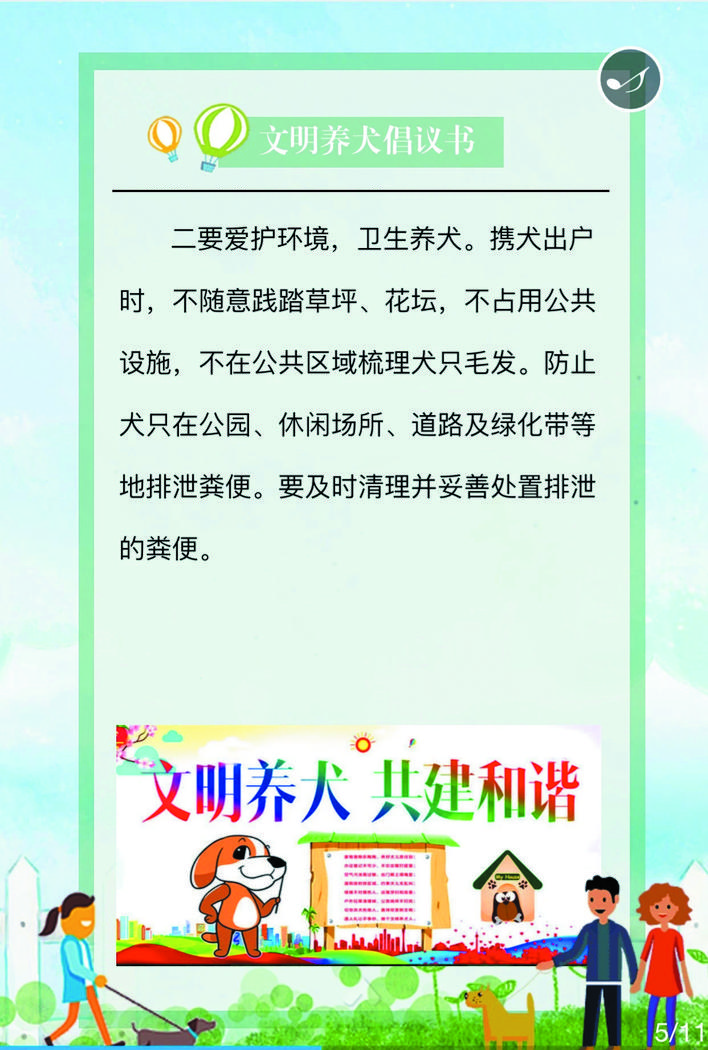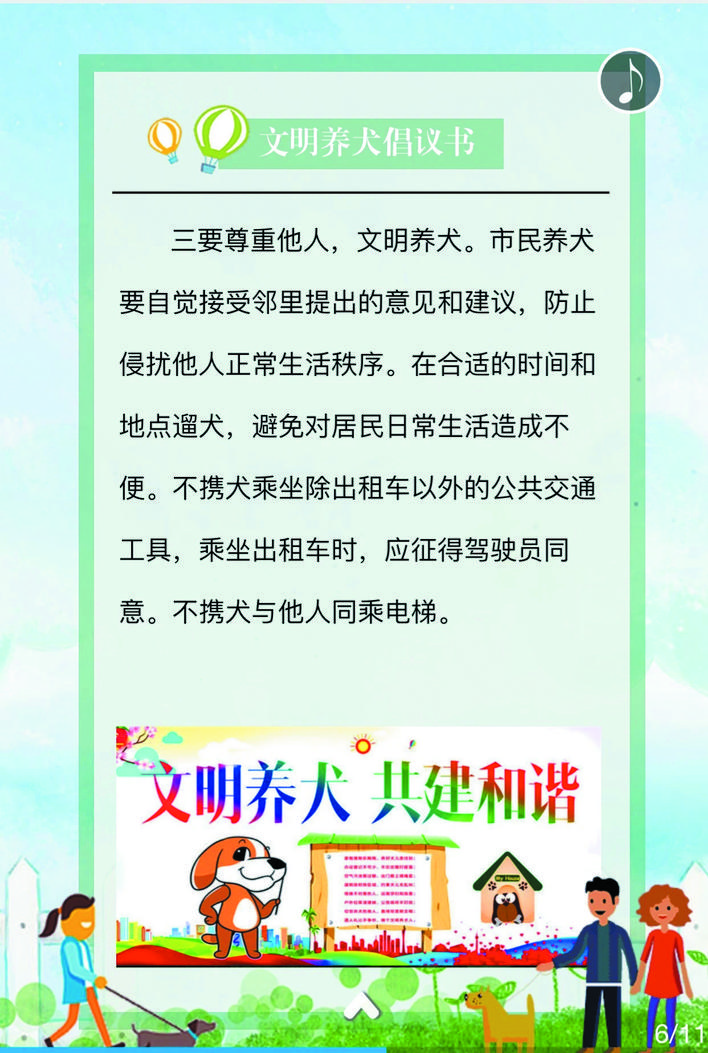在宣傳活動中,民警深入街道、小區(qū)、商鋪等人員密集場所,在宣傳欄懸掛文明養(yǎng)犬宣傳標語、張貼文明養(yǎng)犬倡議書等宣傳資料,向轄區(qū)居民詳細講解《忻州市養(yǎng)犬管理條例》《文明養(yǎng)犬公告》的具體內(nèi)容,引導(dǎo)養(yǎng)犬群眾主動辦理養(yǎng)犬登記證、出門為犬只佩戴犬牌、定期為犬只注射疫苗,做到依法養(yǎng)犬、文明養(yǎng)犬、衛(wèi)生養(yǎng)犬、健康養(yǎng)犬、安全養(yǎng)犬?;顒又?,該局共懸掛宣傳標語50條,張貼文明養(yǎng)犬倡議書500份,向群眾發(fā)放宣傳資料3500人/份。