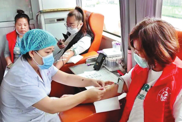 9月4日,小雨。河曲縣青年志愿者協(xié)會的志愿者們一早就來到獻血車前,在工作人員的指導(dǎo)下,按流程填寫資料、測量血壓、采血,有序等候獻血。在獻血隊伍中,有多次獻血的“老將”,也有初次上陣的“新兵”,鮮血隨著愛心流淌。當(dāng)天,23名青年志愿者獻血總量達8800毫升。(劉宇婷 攝)