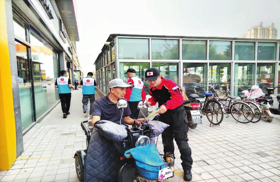 據(jù)了解,每年9月的第三個星期六是“世界骨髓捐獻者日”?;顒赢?dāng)天,市紅十字會工作人員、市紅十字應(yīng)急救援隊隊員以及志愿者,向市民普及日常應(yīng)急救護知識,介紹應(yīng)急救護基本技能。同時,向市民發(fā)放健康教育宣傳資料,宣傳無償獻血、造血干細胞捐獻等相關(guān)知識,呼吁更多適齡健康公民奉獻愛心,挽救更多的血液病患者。圖為志愿者在活動現(xiàn)場向市民發(fā)放健康教育宣傳資料。(記者張林泉 攝影報道)
