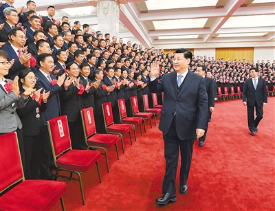 下午3時30分,習(xí)近平等來到人民大會堂北大廳,全場響起熱烈掌聲。習(xí)近平等向代表們揮手致意,同大家親切交流并合影留念。