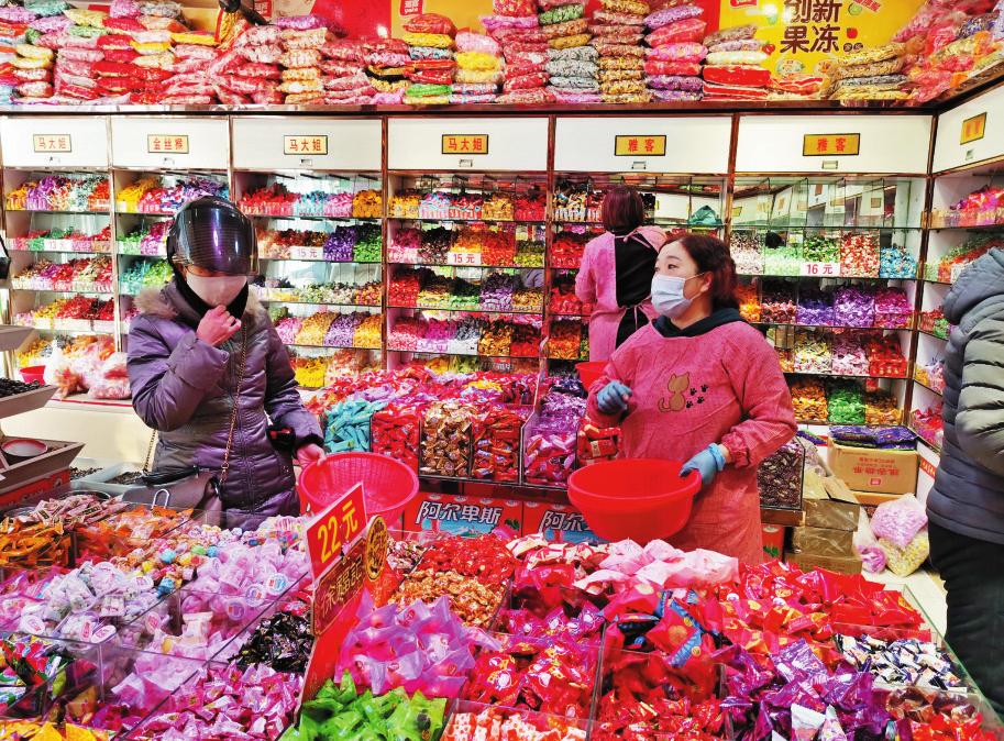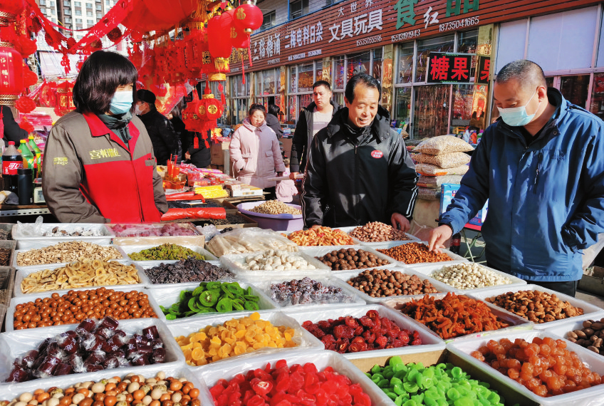 忻州各大商家提前籌劃、備足貨源,為市民歡度新春佳節(jié)做好了準備。忻州小食品綜合批發(fā)市場是城區(qū)一家經(jīng)營多年的市場,總占地面積12000平米,分為四個區(qū)域,現(xiàn)有商戶152家,經(jīng)營有上萬種商品。1月10日,記者走進忻州小食品綜合批發(fā)市場,看到前來購物的市民都戴著口罩、包裹嚴實,盡管是三九寒冬,卻絲毫阻擋不住市民購年貨的熱情。