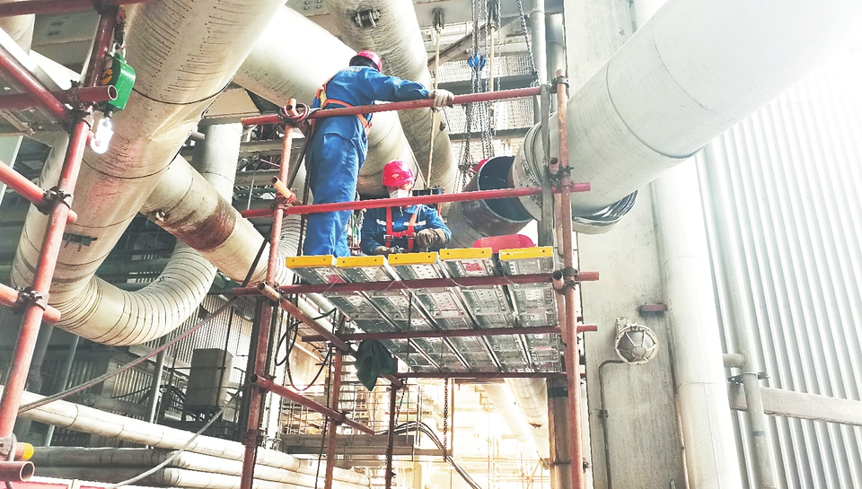 晉控電力侯馬熱電分公司多管齊下扎實(shí)開(kāi)展冬季“三防”工作,確保機(jī)組發(fā)電、供熱雙穩(wěn)定。圖為檢修人員正在進(jìn)行磨煤機(jī)出粉管焊接作業(yè)。王若雨攝