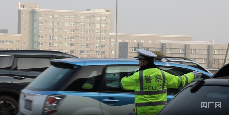 太原武宿航站樓前交警疏導指揮車輛(央廣網(wǎng)記者 郎麒 攝)