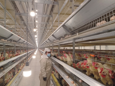穿上無菌服,陳璐帶記者參觀雞舍。墻面是彩鋼夾芯板,耐腐、防火,保溫性能卓越,有效保障雞舍一年四季溫度恒定。雞籠表面是進口鋁鋅合金涂層,顯著降低破蛋率、污蛋率。雞舍內安裝有智能環(huán)境控制系統(tǒng),實時顯示和控制雞舍內溫度、濕度、二氧化碳濃度、光照、通風等環(huán)境指標?!耙坏┠骋豁椫笜说陀诨蛘叱^設定范圍,系統(tǒng)就會啟動各項設備,直至指標恢復正常?!标愯凑f。