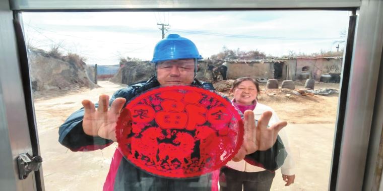 一個(gè)多小時(shí)后,皮卡車抵達(dá)紅糜梁村張偉小家。張偉小是村里的放羊漢,患有高血壓,定期給他捎降壓藥成了張吉?dú)g的順手工作。臨別前,張吉?dú)g仍不忘叮嚀他每天按時(shí)吃藥……皮卡車?yán)^續(xù)盤旋在溝壑之間,駛進(jìn)更偏遠(yuǎn)的的下養(yǎng)倉(cāng)村。張劉女和老伴早已等候多時(shí)。張吉?dú)g卸下他們子女寄來的快遞,得知今年他們的二兒子一家因工作無(wú)法返鄉(xiāng)過年,他便默默搬來木梯,將一對(duì)紅燈籠穩(wěn)穩(wěn)地掛在院門上。燈籠亮起時(shí),溫暖的光照在老人的臉龐上。