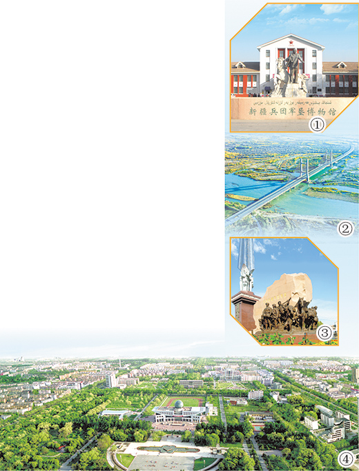 石河子市被譽為“共和國軍墾第一城”。第一代老軍墾陸振歐回憶當時的情景,仍記憶猶新:“那時只有車馬店、賣馕的幾戶人家,除了北面蘆葦?shù)兀教幨腔臑└瓯?。”第一代兵團人喝鹽堿水、睡“地窩子”,人拉肩扛、挖渠引水、改造葦湖、開墾荒地,在荒無人煙的大漠之邊打造了一座現(xiàn)代化新城。如今,石河子市碧水繞城、綠意盎然、鳥語花香,綠蔭掩映座座現(xiàn)代化廠房。石河子崛起為新疆重要工業(yè)基地,享有“戈壁明珠”的美名?!笆幼訌囊粡埌准埰鸺遥l(fā)展到現(xiàn)在,靠的就是兵團人艱苦奮斗、開拓創(chuàng)新的精神。”陸振歐感慨地說。