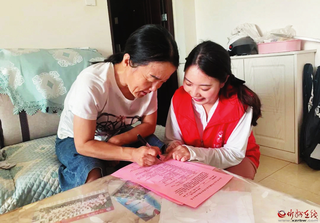 志愿者在居民家中指導(dǎo)居民填寫(xiě)調(diào)查問(wèn)卷。劉慧 攝
