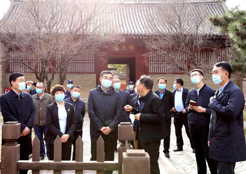李建國(guó)實(shí)地察看繁五高速規(guī)劃路線,聽取相關(guān)控制性工程和預(yù)算等情況。在佛光寺察看護(hù)林防火和安保措施,聽取省古建筑與彩塑壁畫保護(hù)研究院關(guān)于佛光寺保護(hù)活化利用的相關(guān)規(guī)劃介紹。李建國(guó)指出,相關(guān)部門要及時(shí)補(bǔ)齊繁五高速前期推進(jìn)中的短板和不足,緊緊抓住太忻一體化經(jīng)濟(jì)區(qū)建設(shè)的重大歷史性機(jī)遇,解放思想、真抓實(shí)干、主動(dòng)作為,加快構(gòu)建形成綜合立體交通網(wǎng)絡(luò),助力太忻一體化經(jīng)濟(jì)區(qū)建設(shè)強(qiáng)勢(shì)起步。要統(tǒng)籌做好繁五高速建設(shè)與佛光寺文化遺產(chǎn)保護(hù)活化利用,以大五臺(tái)、大佛光寺理念,推進(jìn)科學(xué)研究、文化教育、旅游觀光等多重功能的有機(jī)統(tǒng)一,積極探索世界遺產(chǎn)地可持續(xù)發(fā)展之路,“讓文物說(shuō)話、讓歷史說(shuō)話、讓文化說(shuō)話”,為做強(qiáng)大五臺(tái)旅游吸引圈、忻定原康養(yǎng)服務(wù)圈、太忻黃金旅游帶提供豐富元素,有力打造世界級(jí)旅游康養(yǎng)目的地。