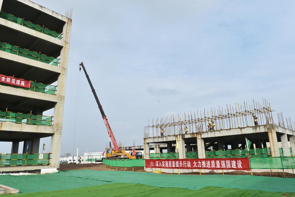 在電子信息裝備產(chǎn)業(yè)園觀摩檢查標(biāo)準(zhǔn)化廠房項(xiàng)目(二期)建設(shè)情況。馮曉磊