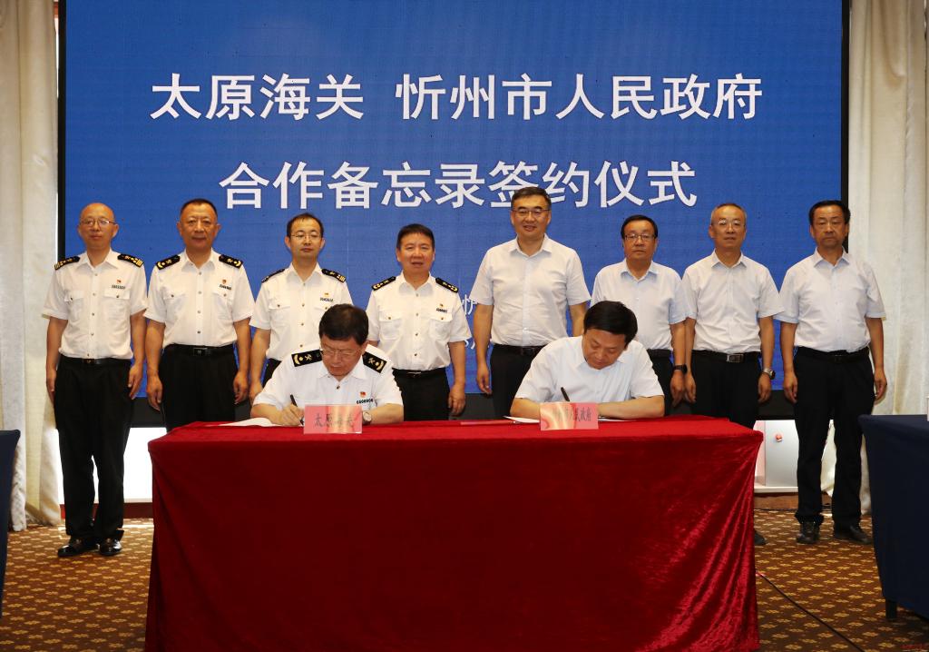 8月6日,忻州市人民政府與太原海關(guān)合作備忘錄簽約儀式在忻舉行。市委副書記、市長李建國,太原海關(guān)黨委書記、關(guān)長江林分別致辭;市政府黨組成員孟宏斌、太原海關(guān)副關(guān)長廉慧鋒代表雙方簽約;市政府秘書長張艮生主持簽約儀式。太原海關(guān)、忻州海關(guān),忻州市商務、財政、公安、市場監(jiān)管部門和五臺山機場負責人等見證簽約。