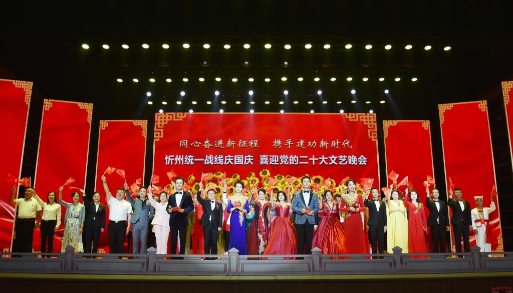同心奮進新征程,攜手建功新時代。9月22日晚,忻州統(tǒng)一戰(zhàn)線慶國慶、喜迎黨的二十大文藝晚會在忻州劇院上演。市委書記朱曉東,市委副書記、政法委書記郭奔勝,市政協(xié)主席范建民,市領(lǐng)導(dǎo)張文偉、溫建軍、張敏等與社會各界和群眾代表一同觀看演出。