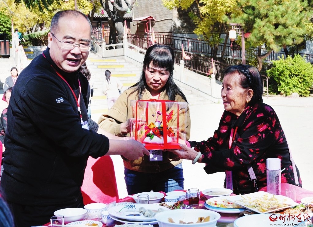 老人們首先來到忻州古城東城門下,換乘觀光車環(huán)繞古城游覽,并觀看了大型情景劇《遇見秀容》。聽著演員們的生動講述,一個個老故事勾起了大家對往昔崢嶸歲月的回憶和對現(xiàn)在和平生活來之不易的感嘆。隨后,老人們來到了云中河景區(qū)冰雪運動中心、房車營地,寬敞整潔的道路,漂亮的景觀,怡人的休閑娛樂環(huán)境令老人們贊不絕口,大家為家鄉(xiāng)日新月異的變化而感到自豪與欣慰。在貂蟬故里文化園,老人們一邊品嘗家鄉(xiāng)特色美食,一邊觀看北路梆子一團的助興演出。志愿者們還準備了“重陽糕”邀請大家一同品嘗,一起分享甜蜜、歡樂和福氣,給整場活動帶來了濃濃的節(jié)日氛圍,老人們的臉上也洋溢起了幸福的笑容。