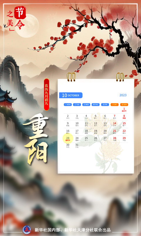 新華社天津10月22日電(記者周潤?。熬湃拯S花酒,登高會昔聞?!?0月23日,農(nóng)歷九月初九,重陽節(jié)。歲歲重陽,今又重陽。農(nóng)歷九月初九緣何是重陽?其中蘊(yùn)含著怎樣的“數(shù)字密碼”?