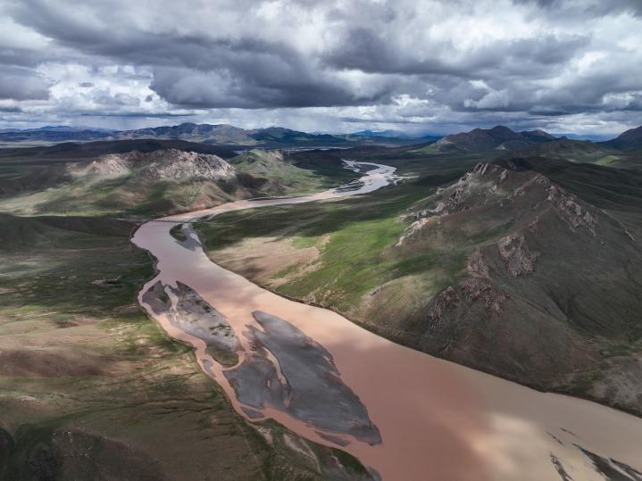 這是2022年7月21日在長江源地區(qū)拍攝的河道。新華社記者張龍 攝