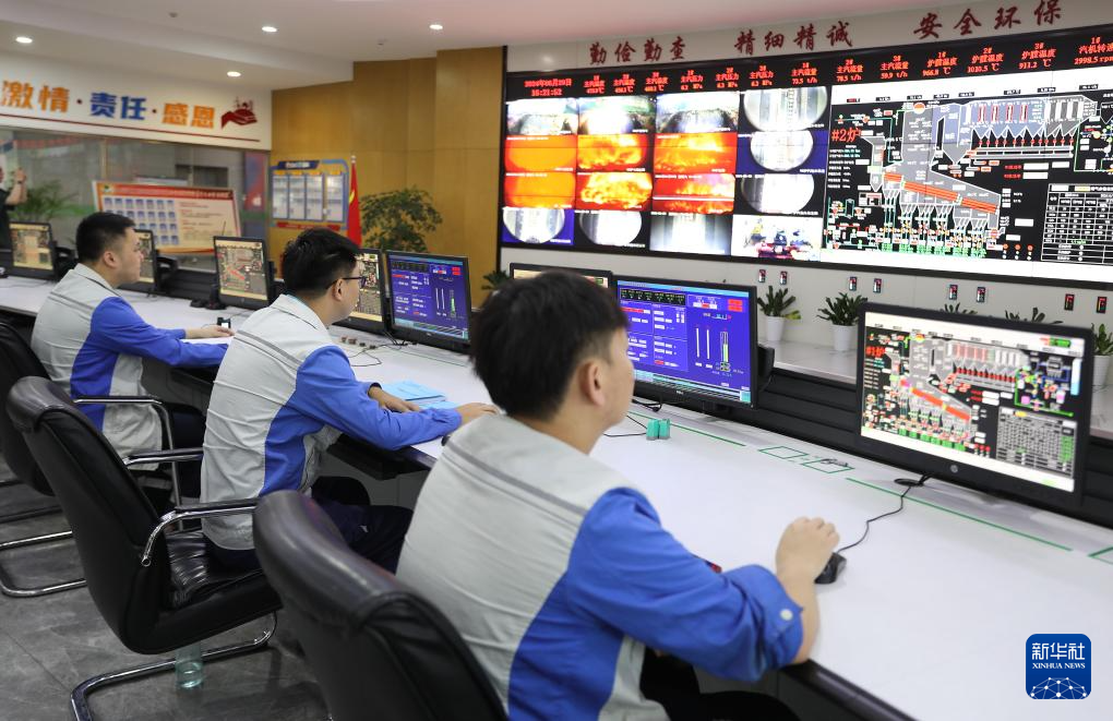 6月29日,在江西南昌固廢處理循環(huán)經濟產業(yè)園,生活垃圾焚燒發(fā)電項目的工作人員在中控室監(jiān)控設備運轉情況。新華社記者 杜瀟逸 攝