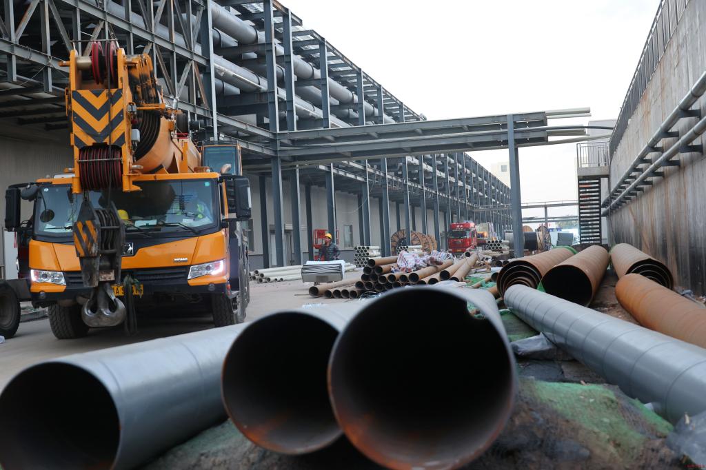 原平經(jīng)濟(jì)技術(shù)開(kāi)發(fā)區(qū)同德科創(chuàng)材料有限公司全生物降解塑料產(chǎn)業(yè)鏈一體化項(xiàng)目建設(shè)現(xiàn)場(chǎng)。馮曉磊攝 該項(xiàng)目不僅是我省省級(jí)重點(diǎn)項(xiàng)目,也是山西同德化工股份有限公司在化工新材料領(lǐng)域投資建設(shè)的重點(diǎn)轉(zhuǎn)型項(xiàng)目。項(xiàng)目吸納了中化六院、上海迪陽(yáng)、南京蘇美達(dá)等國(guó)內(nèi)行業(yè)巨頭,集成當(dāng)今世界最先進(jìn)的全流程工藝裝備和數(shù)字化智能制造技術(shù),從整體工藝到產(chǎn)品構(gòu)成,從節(jié)能環(huán)保到運(yùn)行效率,均達(dá)到世界領(lǐng)先水平,引領(lǐng)行業(yè)發(fā)展方向。