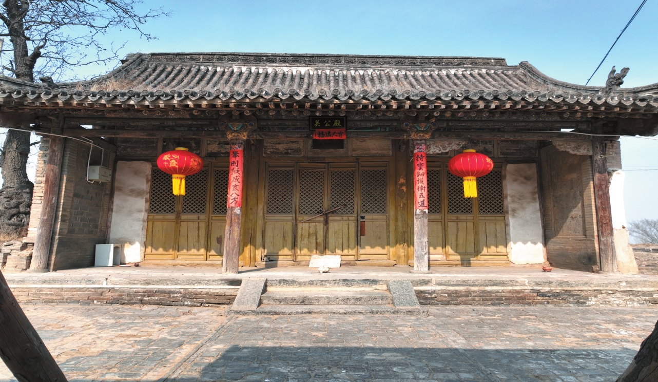 該公祠為二進院落布局,中軸線上建有戲臺和過殿,兩側為東耳殿和東配殿。東配殿為明代遺構,其余皆為清代建筑。過殿石砌臺基,基寬8.9米、深8.7米、高0.98米,面寬三間,進深五椽,單檐硬山頂,六檁前廊式構架,裝修已改。東配殿磚砌臺基,基寬8.6米、深6.7米、高0.5米,面寬三間,進深四椽,單檐懸山頂,五檁無廊式構架,現(xiàn)存裝修為后世改動。祠內現(xiàn)存金代重修碑1通、清代重修碑2通。