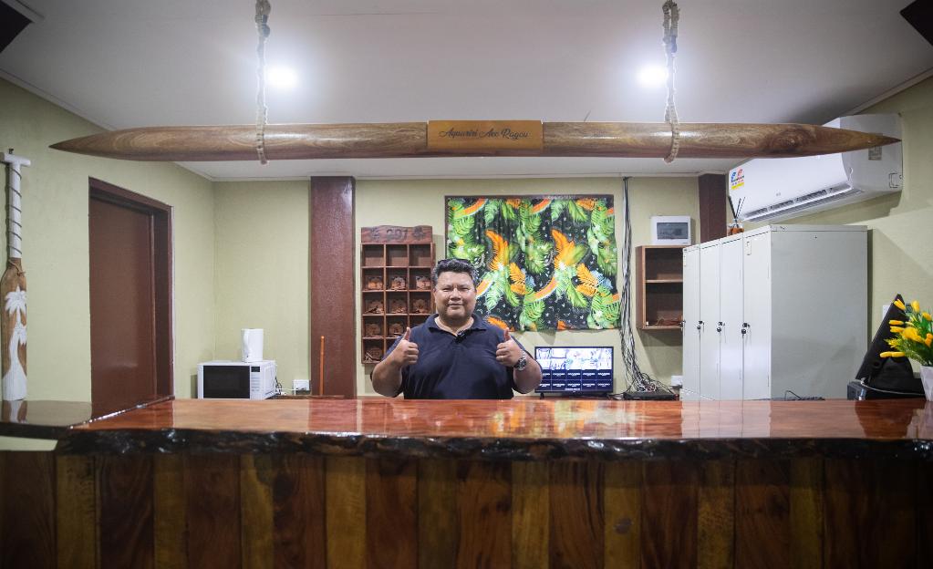 2月2日,客棧老板丹尼爾在瑙魯島東南部的“阿夸里里”客棧內(nèi)。