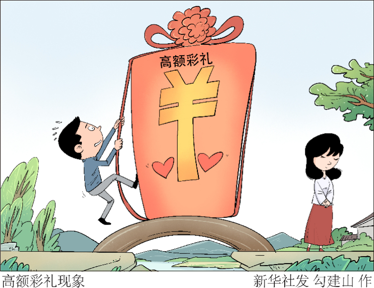在我國(guó)傳統(tǒng)婚俗中,一定的聘禮是締結(jié)婚姻的重要儀式,但今天的高價(jià)彩禮不同于聘禮,它往往壓得人喘不過(guò)氣,讓不少年輕人望而生畏,強(qiáng)烈呼吁改革婚俗。