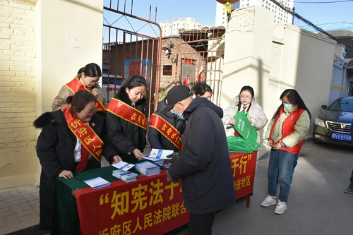 為進(jìn)一步弘揚(yáng)法治精神,發(fā)揮人民法院在基層社會(huì)治理中的積極作用,近日,忻府區(qū)法院與團(tuán)東社區(qū)聯(lián)合開展“知憲法于心,守法律于行”憲法宣傳活動(dòng)。