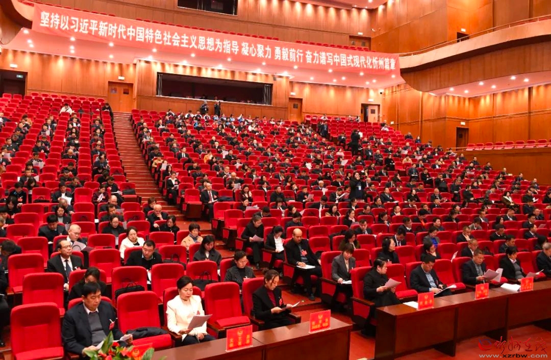 當(dāng)日上午,忻州大劇院大劇場布置簡樸,氣氛莊重?zé)崃?。中國人民政治協(xié)商會議會徽懸掛在主席臺正中,十面鮮艷的紅旗分列兩側(cè)。會場內(nèi)高高懸掛著大紅橫幅:堅持以習(xí)近平新時代中國特色社會主義思想為指導(dǎo),凝心聚力,勇毅前行,奮力譜寫中國式現(xiàn)代化忻州篇章。