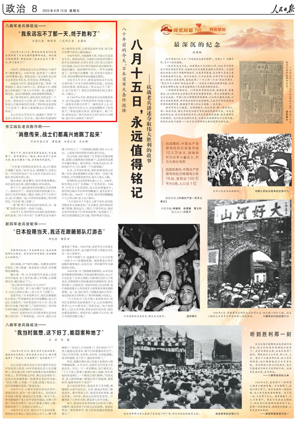 1945年8月15日,郭效遠和戰(zhàn)友們從電臺里聽到了日本無條件投降的消息。回憶起當時的情景,郭效遠說:“我永遠忘不了那一天,終于勝利了!”