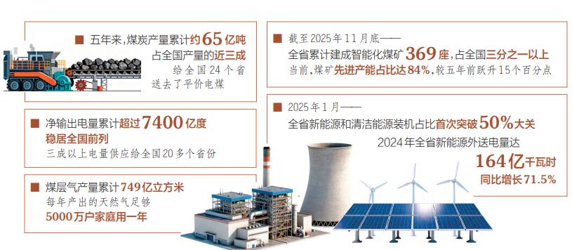我省堅(jiān)持新能源與傳統(tǒng)能源協(xié)同,加快建設(shè)煤炭綠色開發(fā)利用基地、電力外送基地、非常規(guī)天然氣基地,能源供應(yīng)韌性大幅增強(qiáng),能源安全保障能力持續(xù)提高。